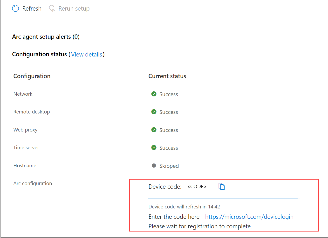 • Failed: Rerun registration using a new ARM token or device code flow.