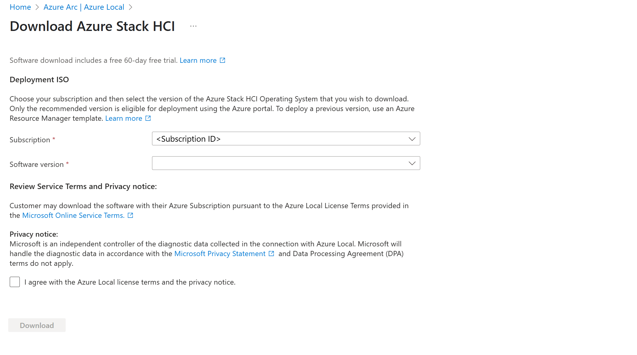 Select I agree with Azure Local license terms and privacy notice and then select Download.