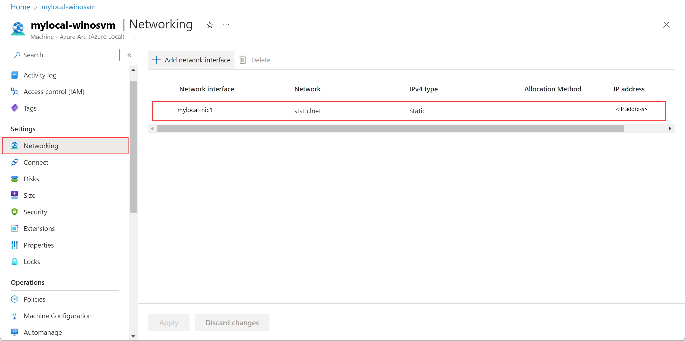 Select Apply to apply the changes. The network interface is dissociated from the Azure Local VM.