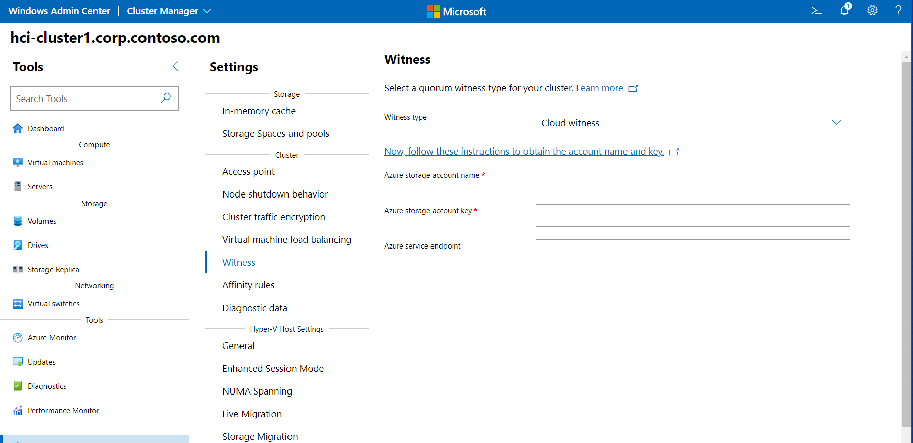 Now you're ready to create a witness instance for your cluster using Windows Admin Center.