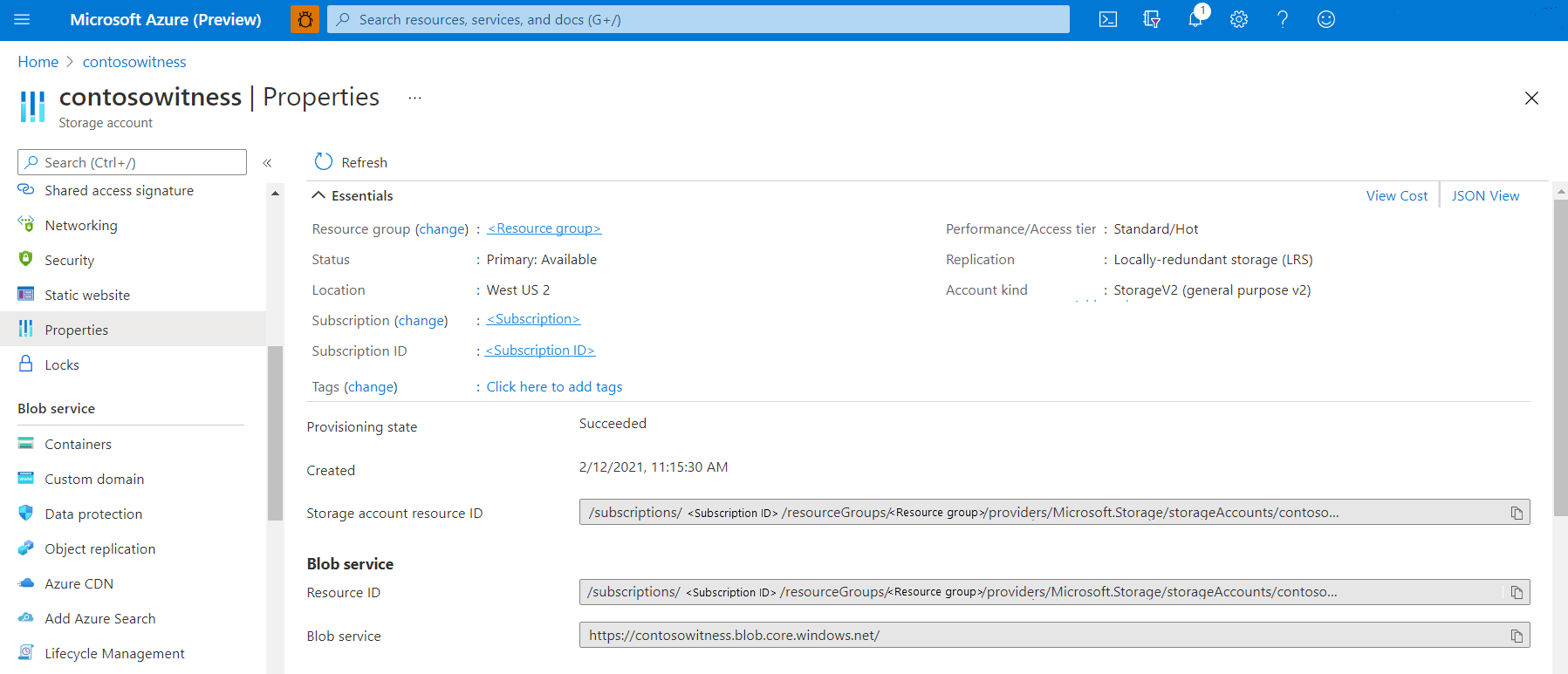 In the Azure portal, select Properties.