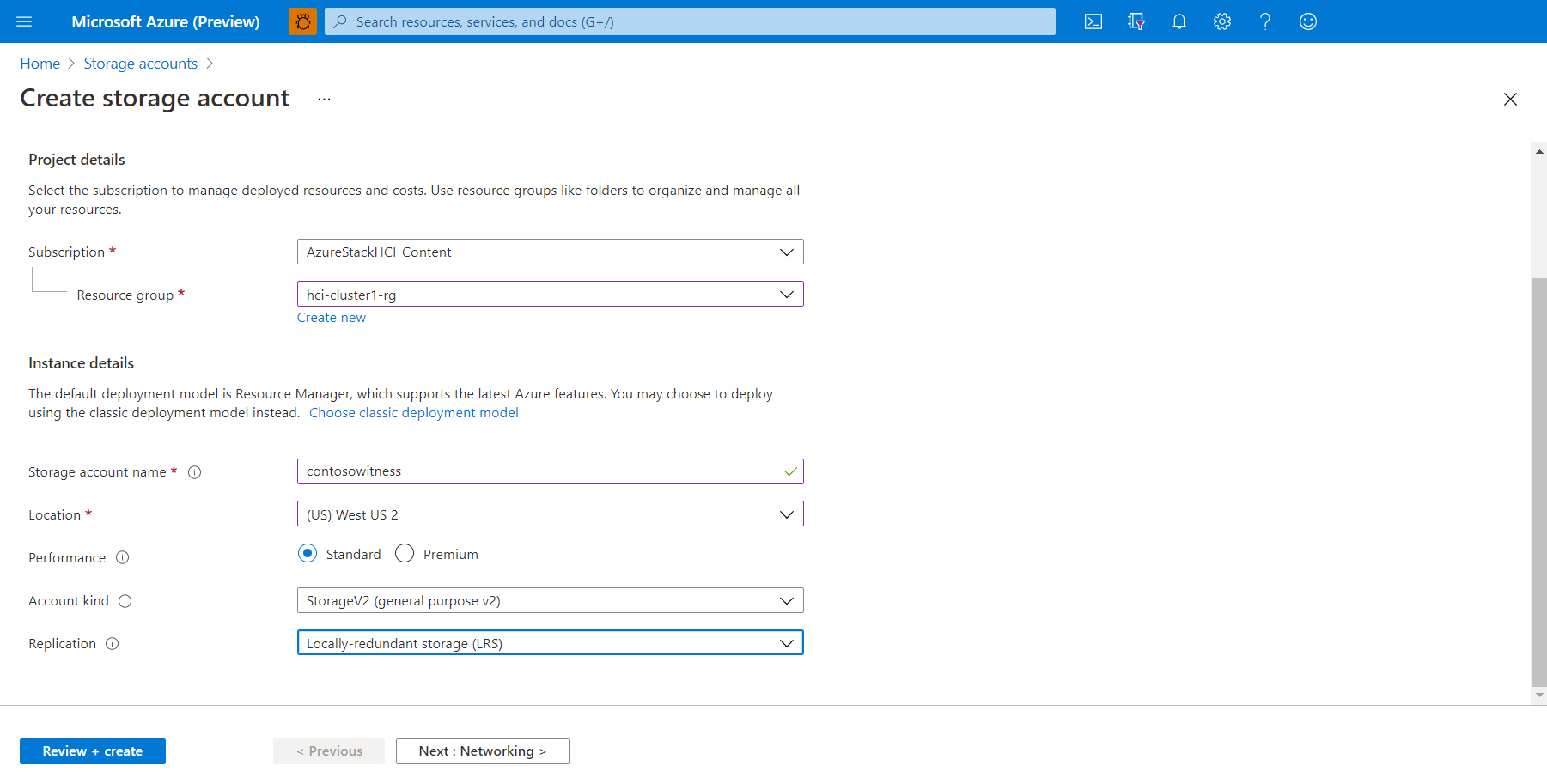 - For Replication, select Locally-redundant storage (LRS).