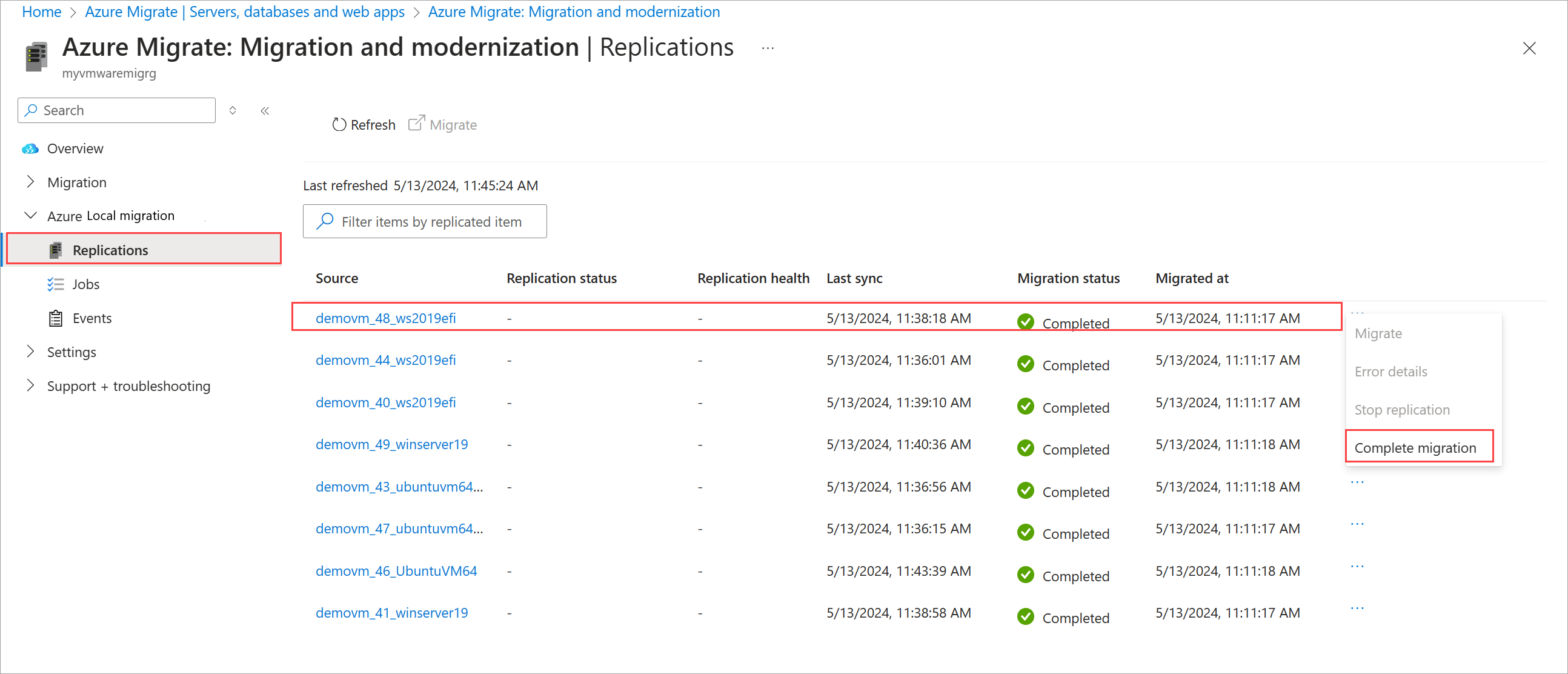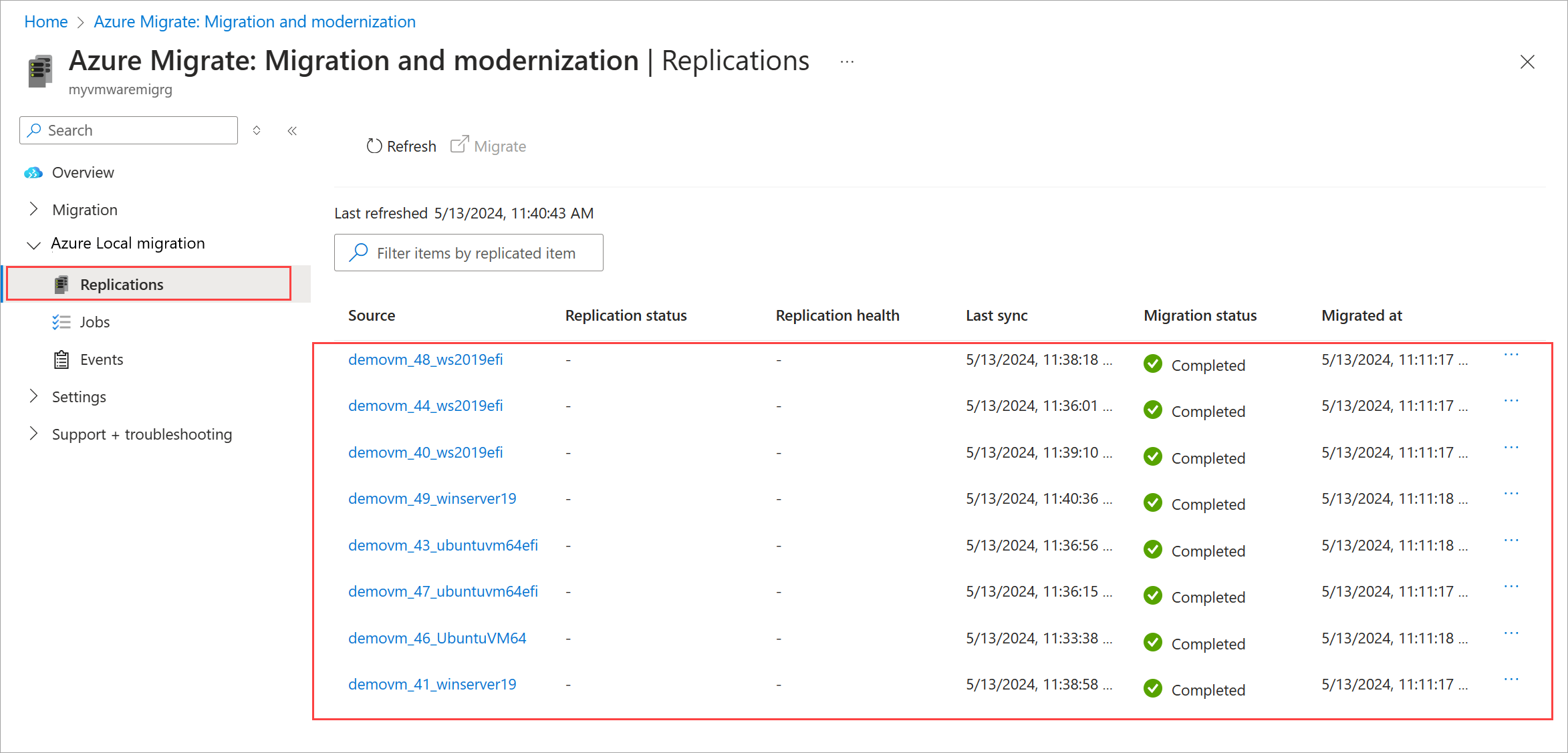 - Make sure that you have replicated the VMware VMs on your Azure Local instance. To replicate a VM, use the instructions in Replicate VMware VMs to Azure Local using Azure Migrate.