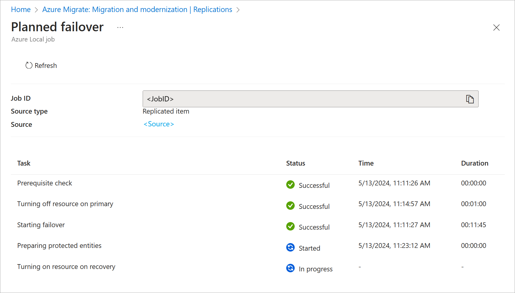 Refresh the page periodically to view the migration status. You can also select the migration status at any time to view the progress details.