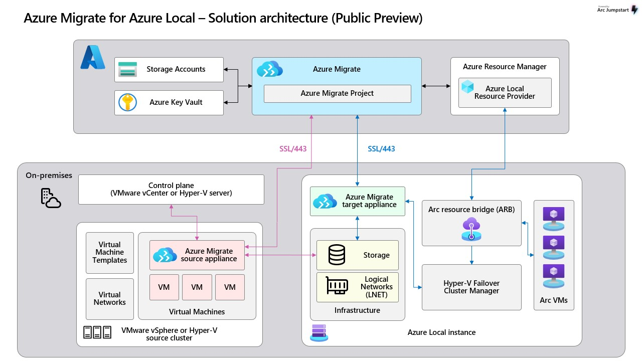 - Keeps the data flow local, from on-premises VMware source servers to Azure Local.