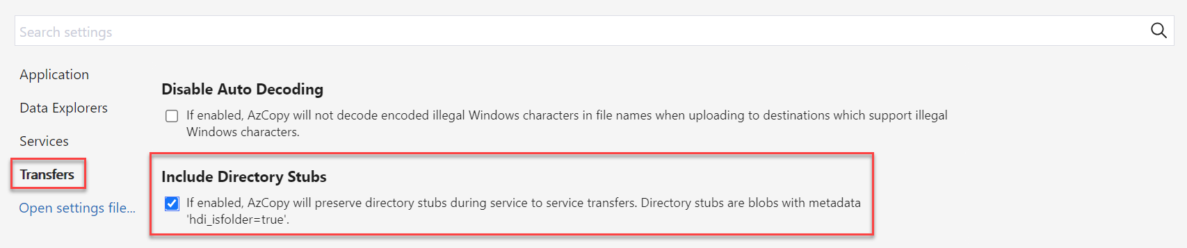 In Storage Explorer, you can enable this flag in Settings by selecting Transfers and selecting the box for Include Directory Stubs.