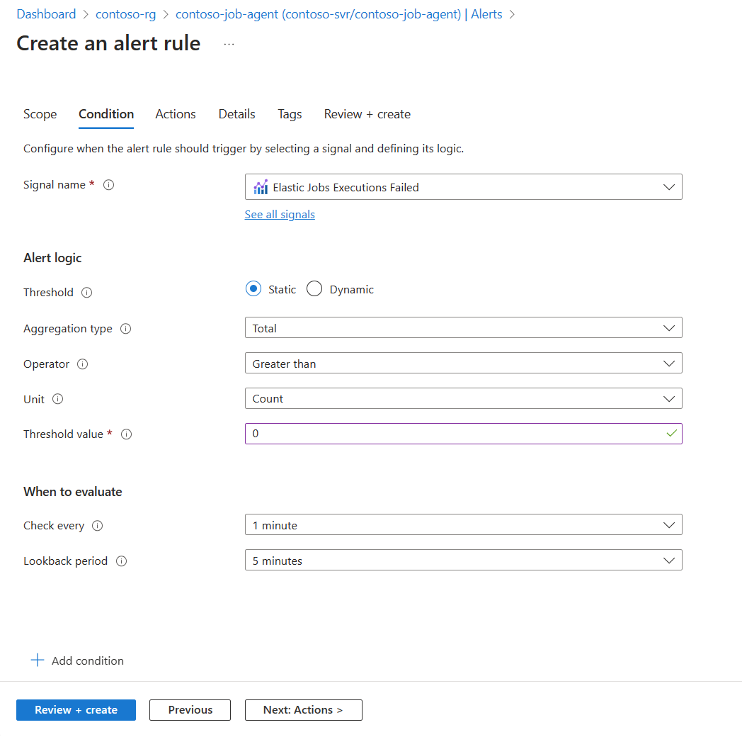 Create Azure Monitor Alert rules with the Azure portal, Azure CLI, PowerShell, and REST API. Alert rules for elastic jobs operate similarly as with other alert rules, such as for Azure SQL Database.