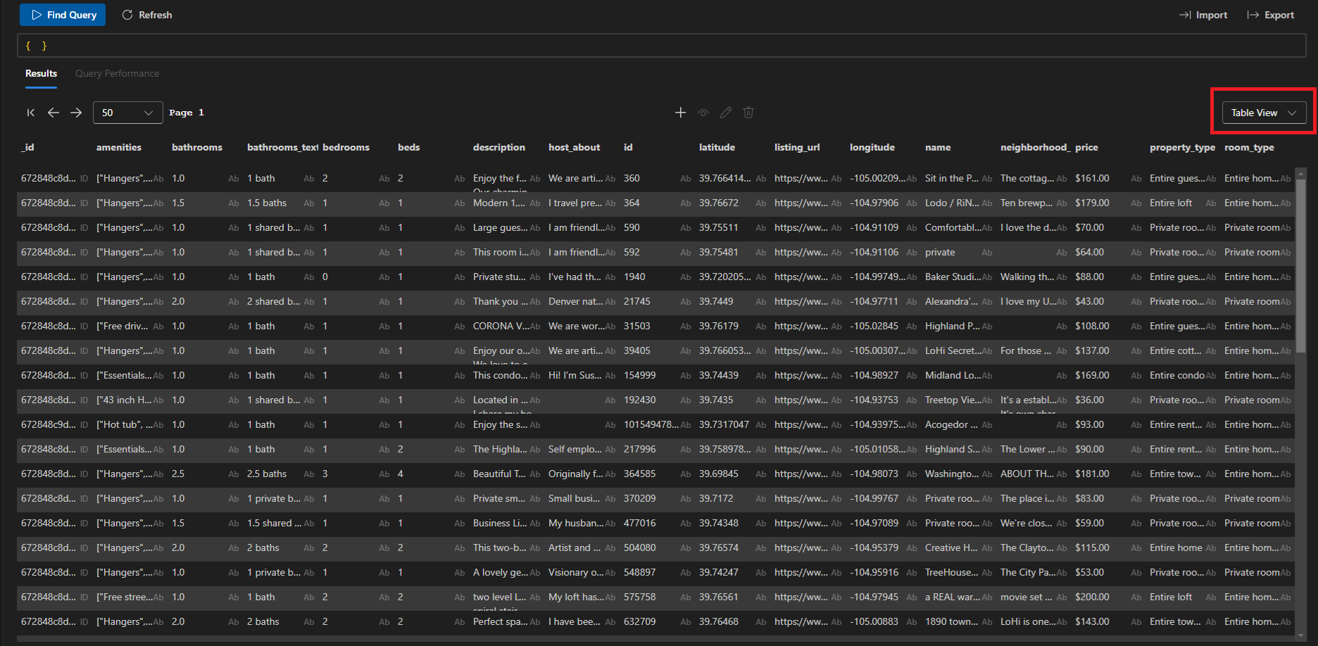 Table View: Quickly scan data and drill down into nested documents.