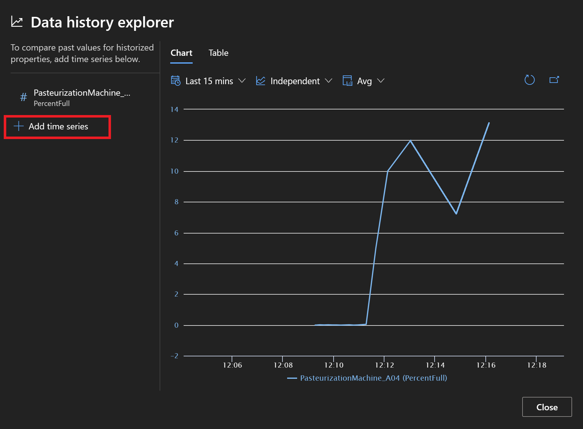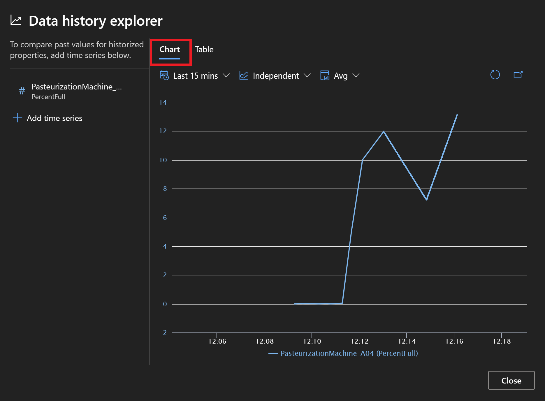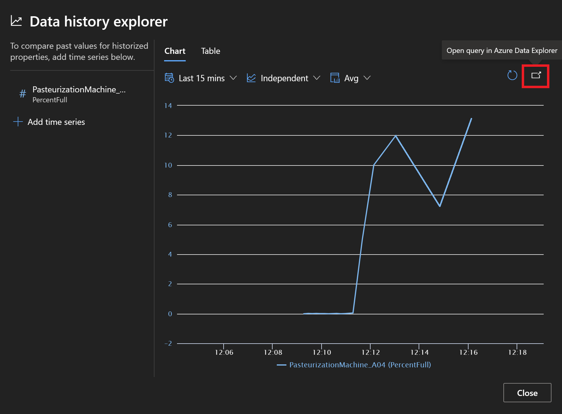 To exit the data history explorer and return to the main Azure Digital Twins Explorer, select Close.