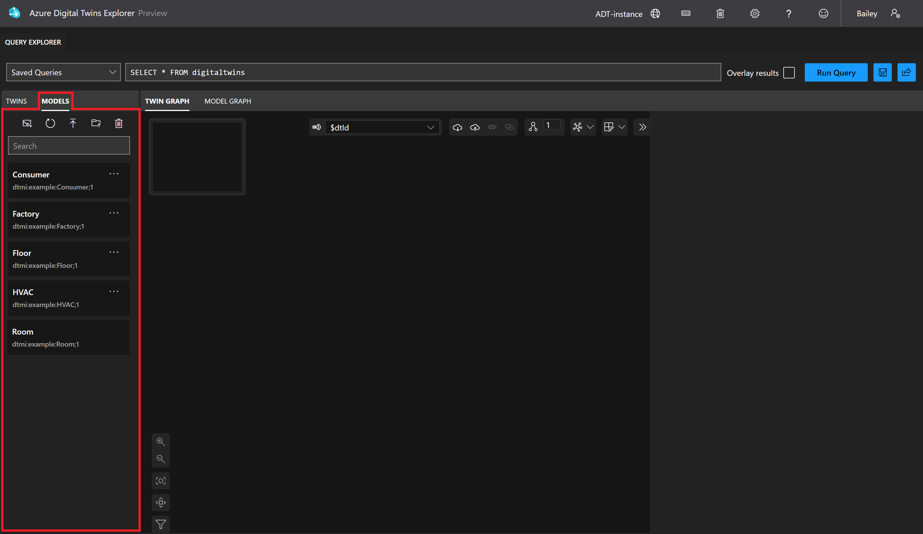 When you open Azure Digital Twins Explorer, the Models panel should automatically show all available models in your environment.