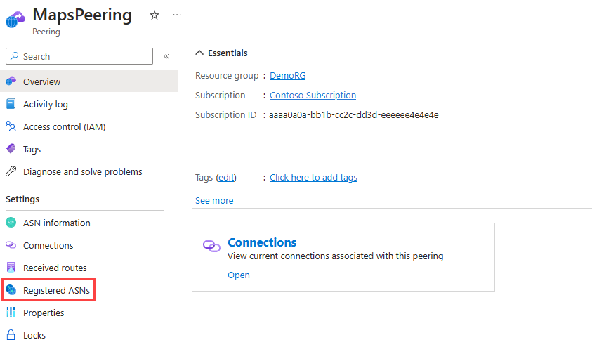 After the ASN is registered, a unique Peering Service prefix key that's used for activation is generated.