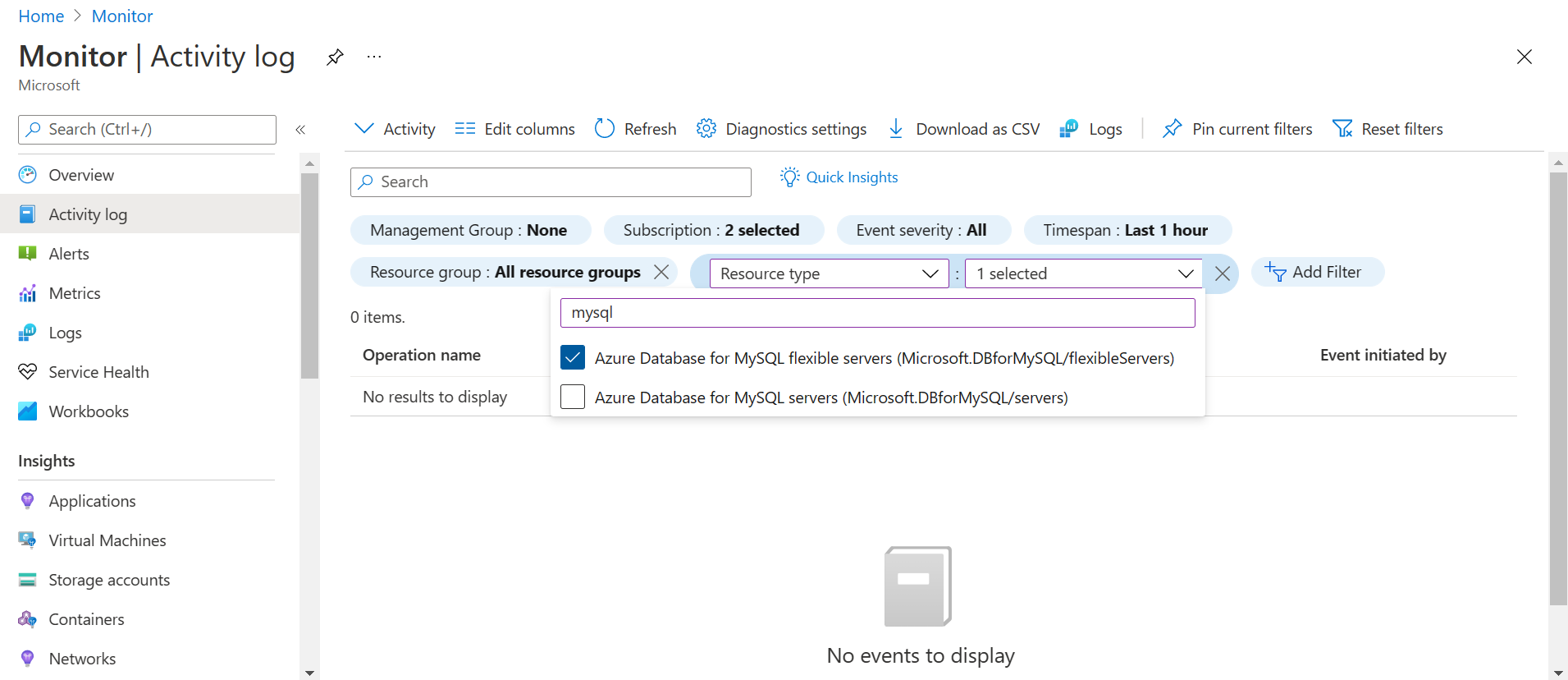 2. Resource Type = Azure Database for MySQL Flexible Server (Microsoft.DBforMySQL/flexibleServers)
