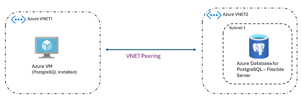 | PostgreSQL installed on an Azure virtual machine (VM) in the same virtual network or in a different virtual network | VNet-integrated Azure Database for PostgreSQL flexible server in the same virtual network or in a different virtual network | Yes |