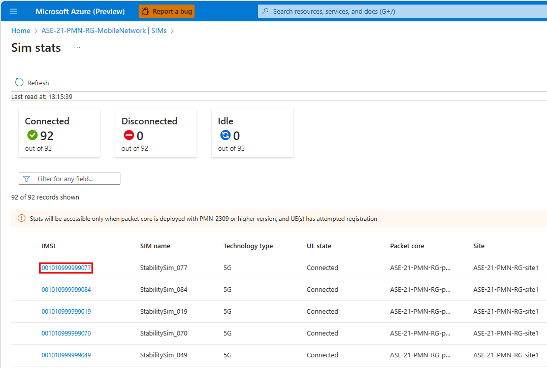 - If you assigned a SIM policy to multiple SIMs, you'll be taken to the resource group containing your private mobile network. Select the Mobile Network resource, and then select SIMs in the resource menu. Check the SIM policy column in the SIMs list to confirm the correct SIM policy has been assigned to your chosen SIMs.