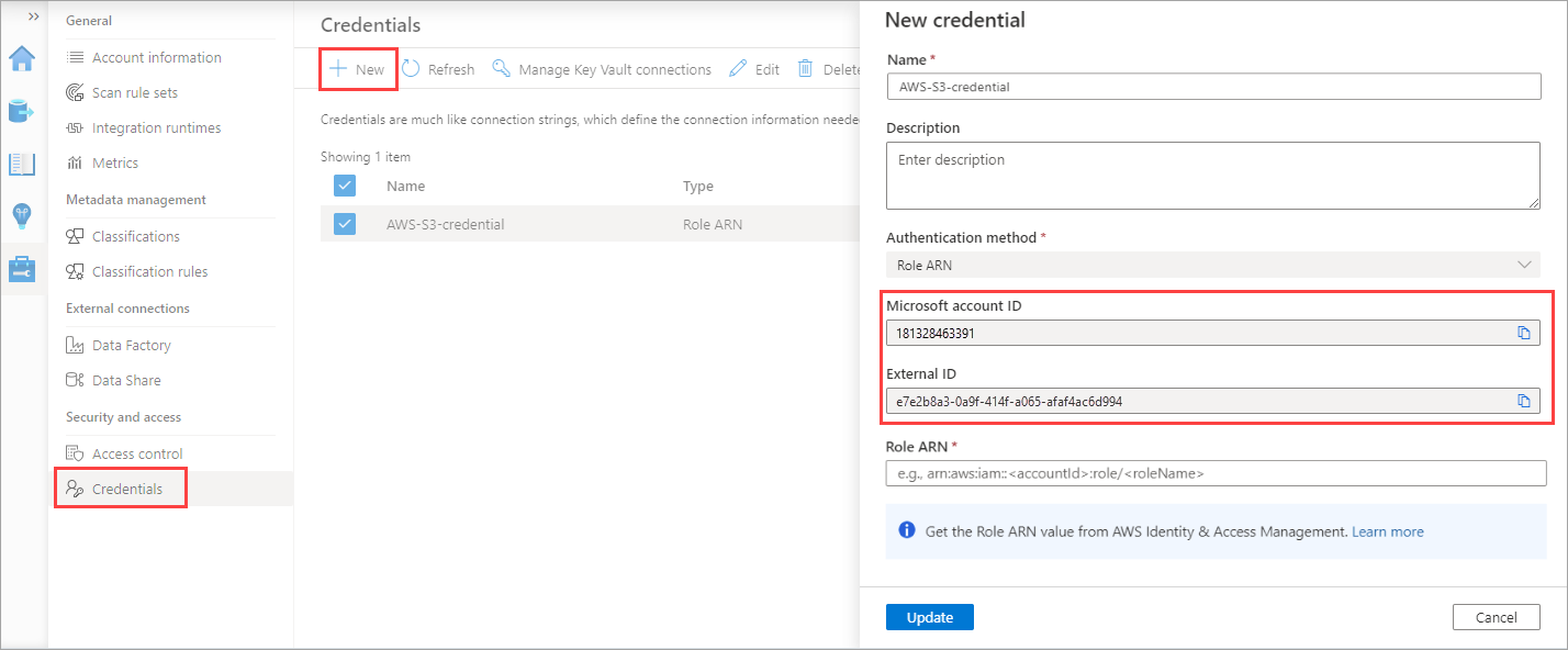 - Create a Microsoft Purview credential for your AWS bucket scan