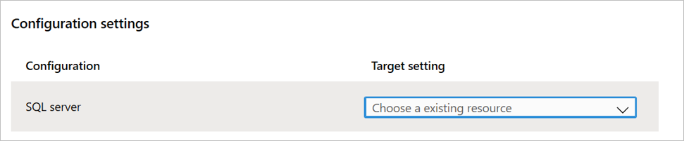 In Across regions, for the SQL server resource, in the Destination configuration column, select Resource not assigned.