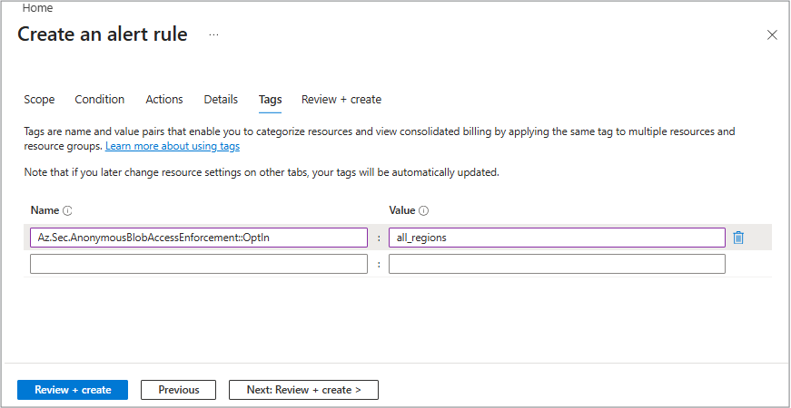 On the Tags tab, you can select tags and then assign a value for them. For more information, see Learn about tags.