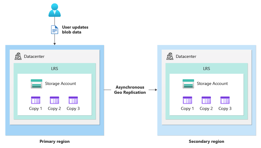Data is replicated three times per region for each storage account configured for geo-redundant storage (GRS) or read access geo-redundant storage (RA-GRS) redundancy. This approach means that replication occurs within both primary and secondary regions. Each region is essentially locally redundant (LRS), and contains three copies of your data.