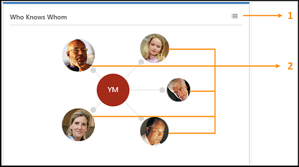 Select the icon in the upper-right corner of the Who Knows Whom widget to switch between graph and list views.