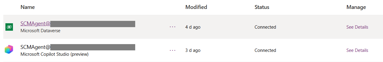 Find the connection with a Name of Microsoft Copilot Studio. Select Create for that row and follow the instructions on your screen. Sign in as the intended agent identity when prompted.