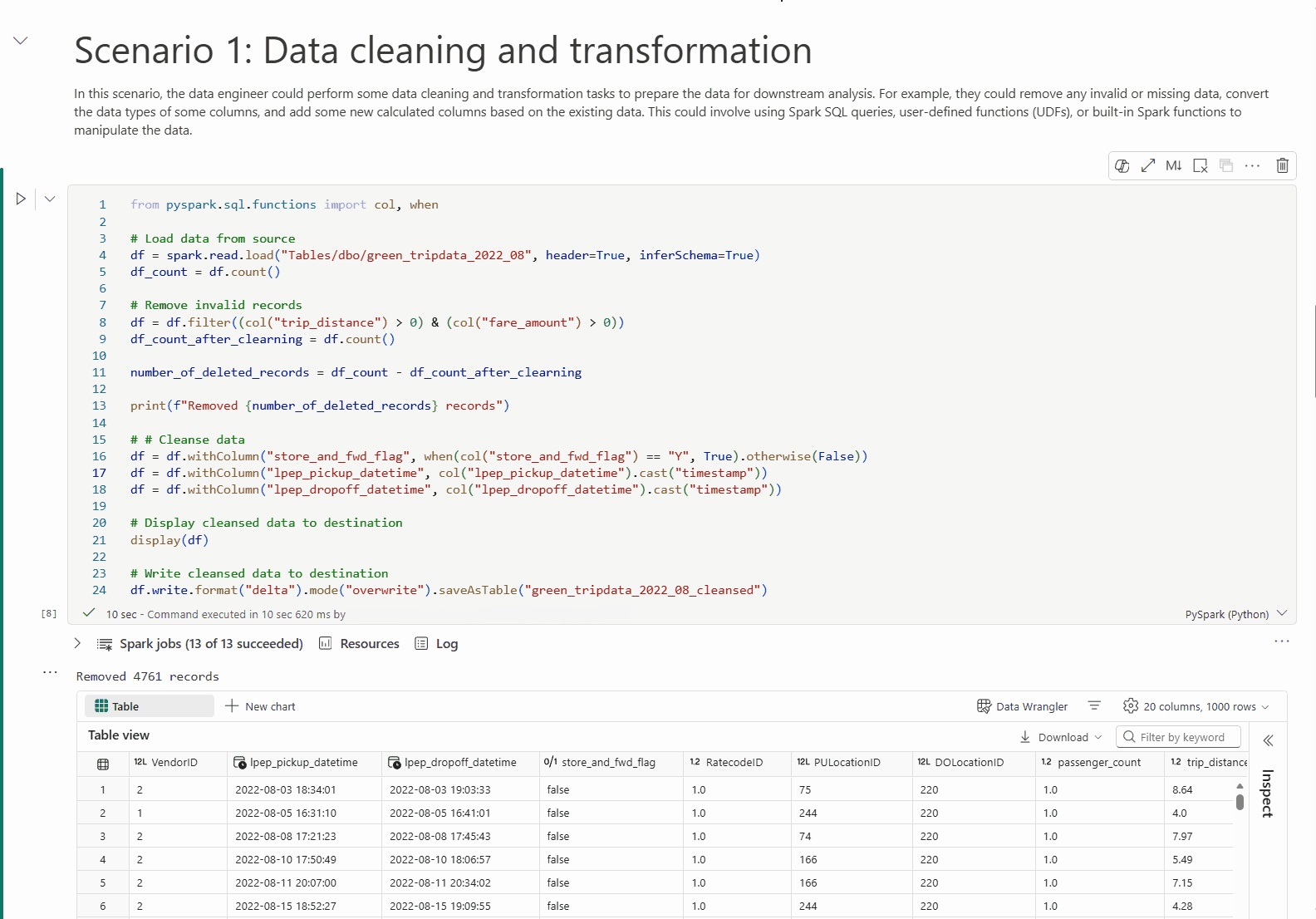 Fabric notebooks provide code snippets that help you easily write commonly used code patterns, like: