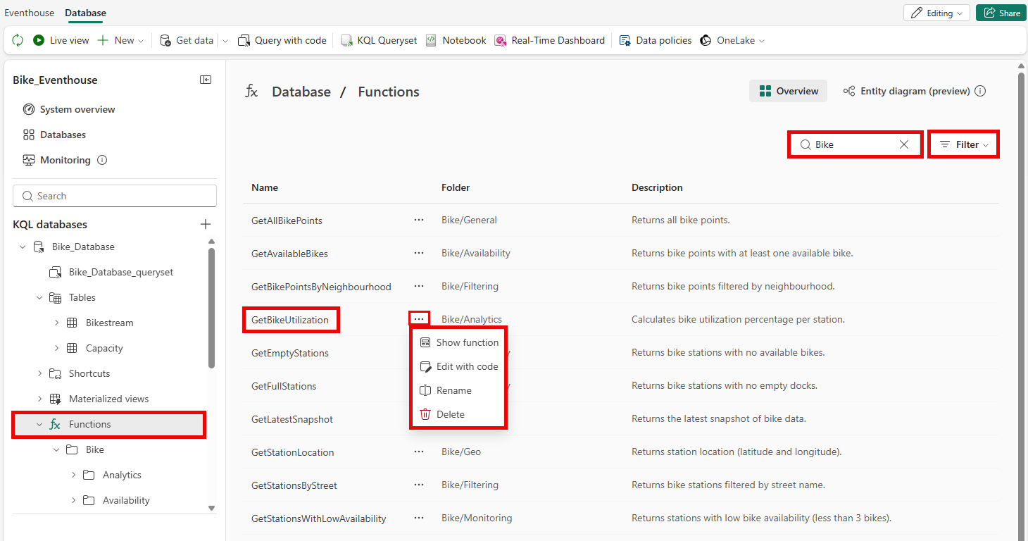 Functions are reusable queries or query parts. Real-Time Intelligence supports two kinds of functions: