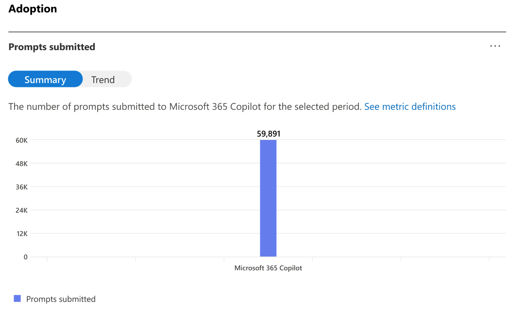 Trend view shows the daily trend of prompts submitted in Microsoft 365 Copilot over the selected time frame.