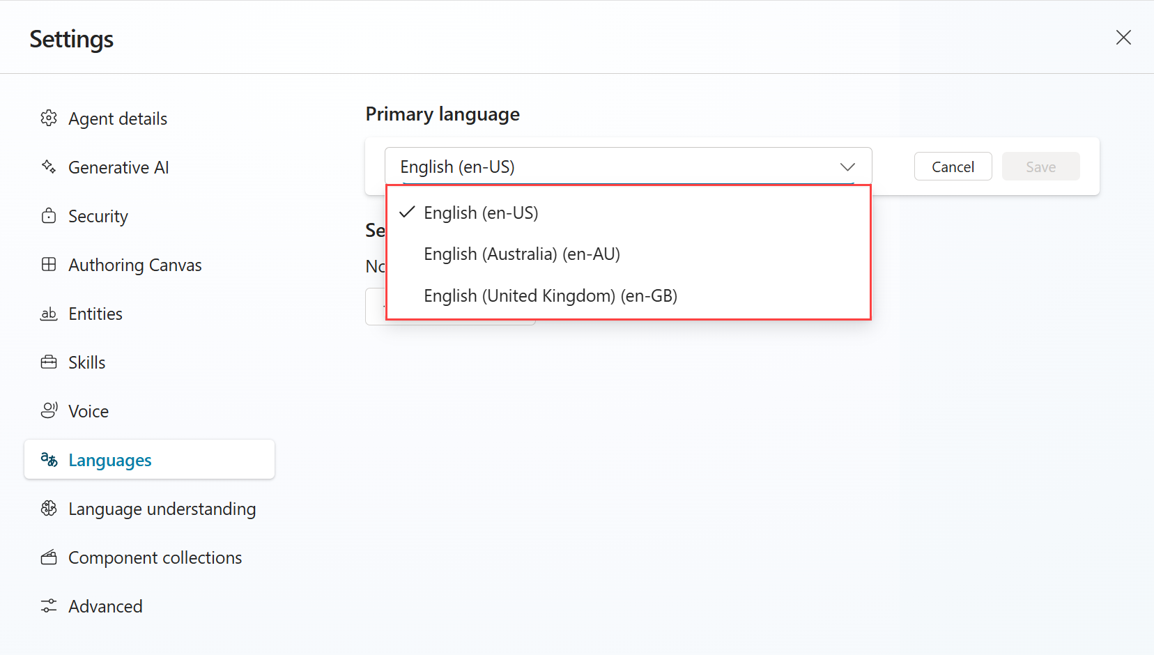 You can create agents in Copilot Studio in many languages. Your agents can reach a broader audience and engage with more markets around the world.