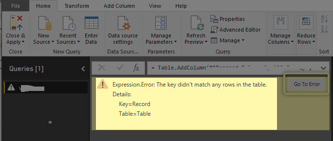 Expression.Error: The key didn't match any rows in the table.