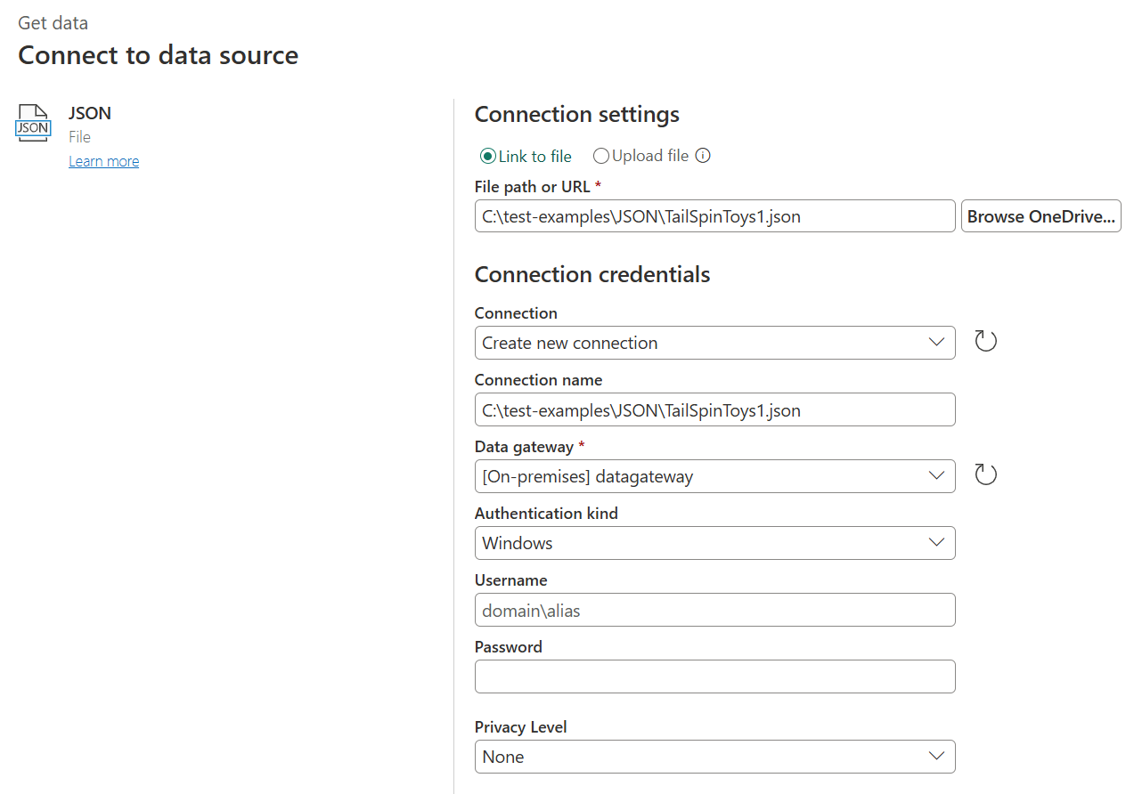 Load a local JSON file from Power Query Online