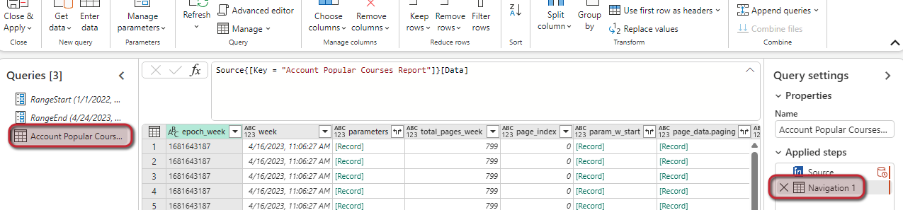 In each table or query select Navigation within the Applied Steps section.