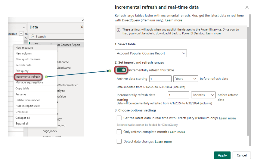 Setting up incremental refresh