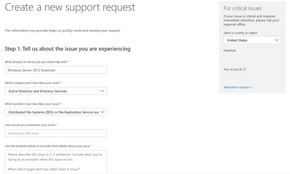 Services Hub temporarily has three support request creation flows. For more information, see Open support requests.
