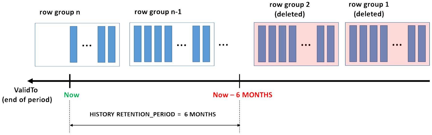 With each of these approaches, the logic for migrating or cleaning history data is based on the column that corresponds to end of period in the current table. The end of period value for each row determines the moment when the row version becomes closed, that is, when it lands in the history table. For example, the condition ValidTo < DATEADD (DAYS, -30, SYSUTCDATETIME ()) specifies that historical data older than one month needs to be removed or moved out from the history table.