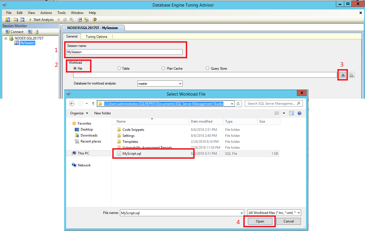 MySessionin Session name.Select File for your Workload, and select the binoculars icon to Browse for a workload file. Locate the