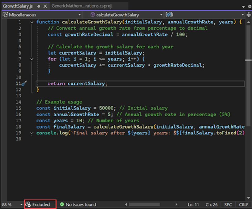 Code completions aren't available for excluded files.