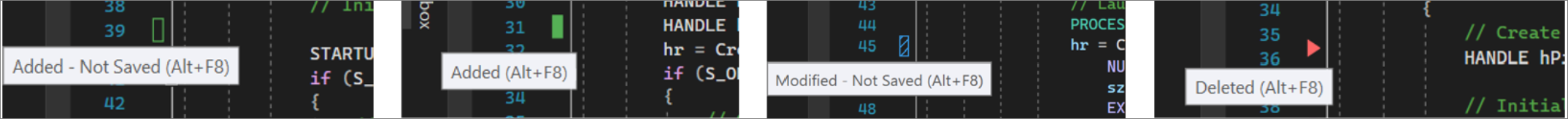 You can change the colors that Visual Studio displays to help you manage changes. In the Tools > Options page, search for Fonts and Colors, and configure the following Display items options:
