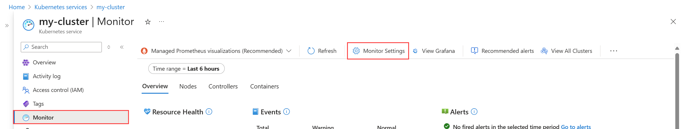 - Se si usa un collegamento privato, vedere Abilitare il collegamento privato per il monitoraggio di Kubernetes in Monitoraggio di Azure.