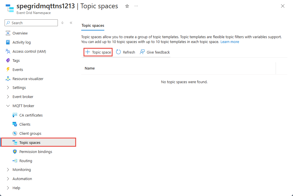 Nel menu a sinistra selezionare Spazi argomento nella sezione broker MQTT.