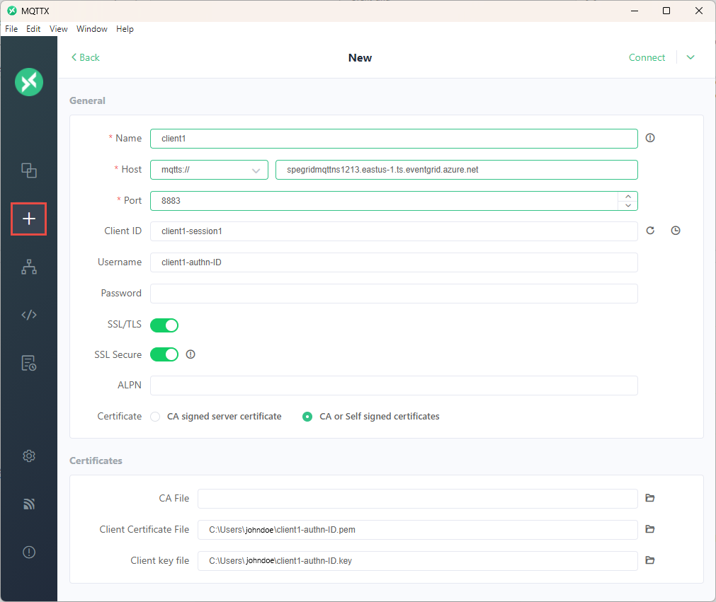 Connessione dei client allo spazio dei nomi EG tramite l'app MQTTX