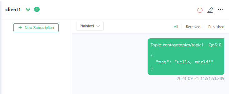 Il messaggio deve essere visualizzato come pubblicato nel client 1.