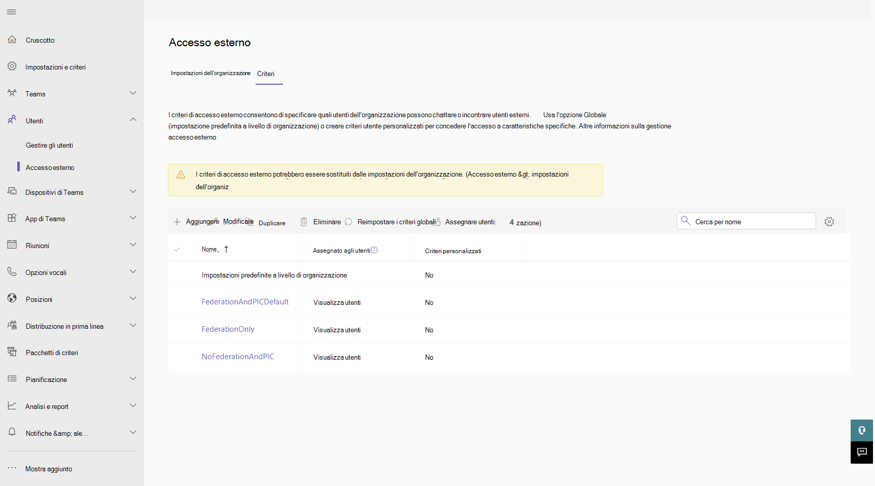 - Riunioni e chat con organizzazioni di Microsoft 365 attendibili