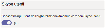 Attivare o disattivare l'impostazione Consenti agli utenti della mia organizzazione di comunicare con gli utenti Skype .