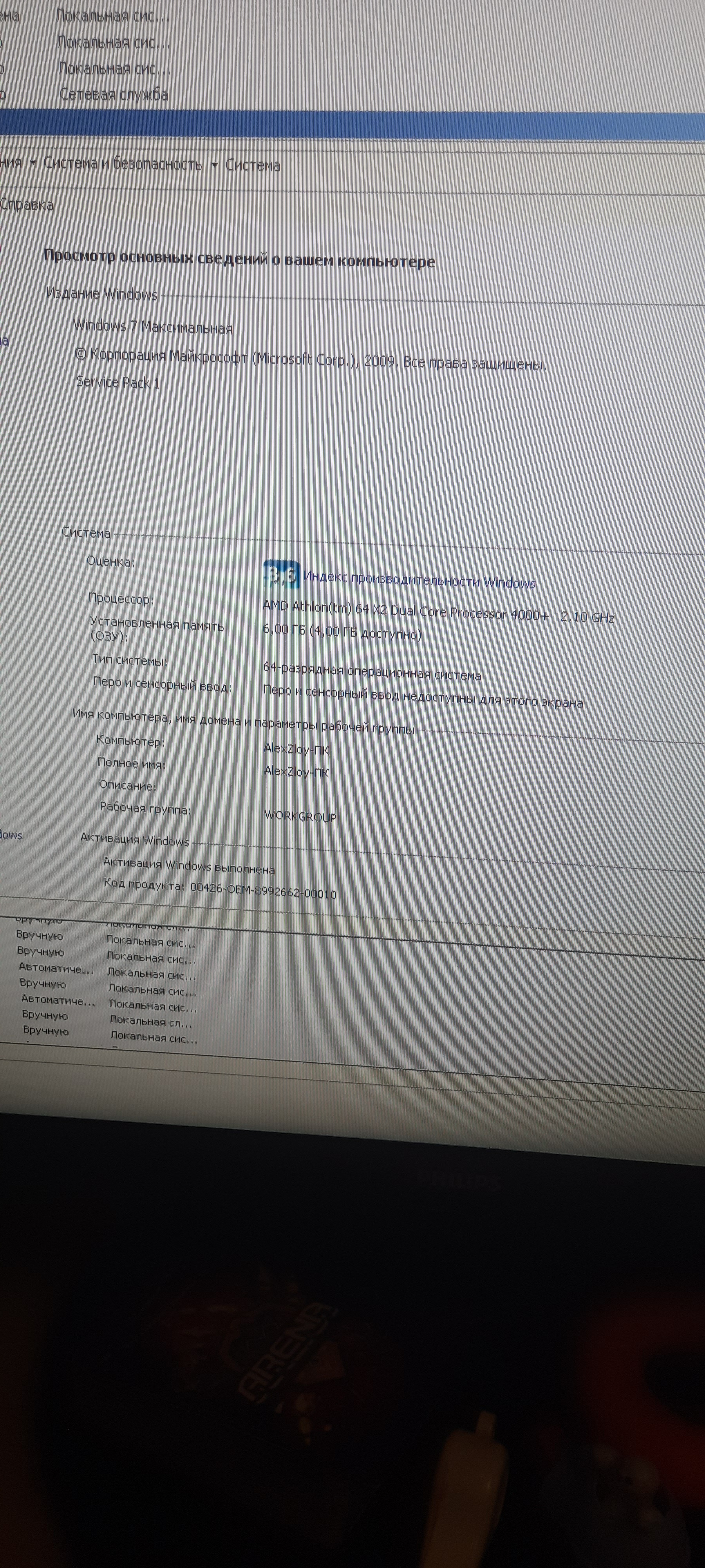 - Окна Панель управления-Система, развернутое во весь экран, со всей информацией в нём.