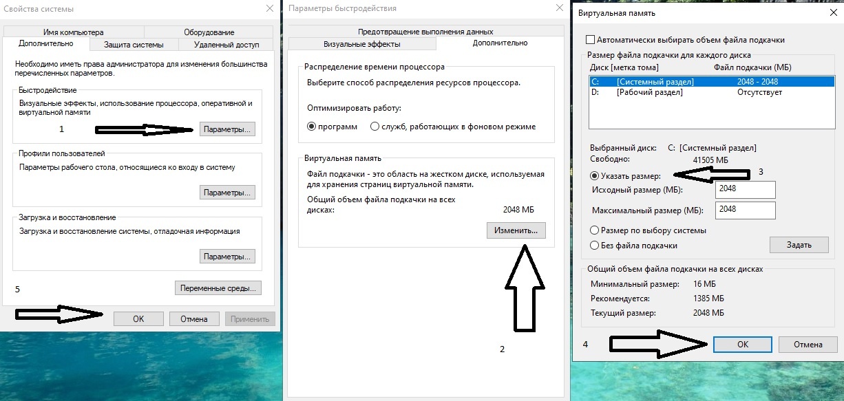 А затем далее по очереди.Потом Перезагрузка всей системы.Размер подкачки выбирайте на основании размера вашей оперативной память.У меня лично 4 Гб.