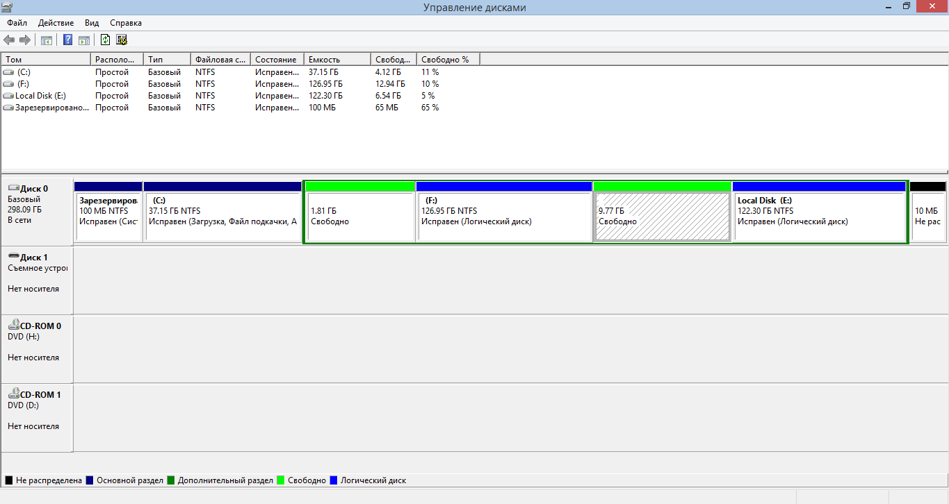 У меня маленький диск С, поэтому решила его расширить за счет других дисков. Однако оказалось, что диски E и F находятся на "Дополнительном диске", из-за чего при сжатии раздела создаются разделы "Свободно", которые уже больше невозможно ни вывести в нераспределенное дисковое пространство, ни присоединить обратно к диску, ни, тем более, присоединить к диску С.