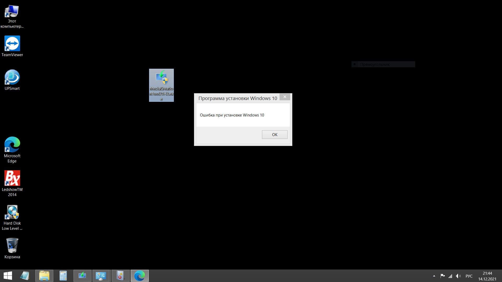 Запускаю программу MediaCreationTool21H2, скачивается дистрибутив нового Windows и начинается установка. Когда доходит до 99% всплывает окно "Ошибка при установке Windows 10" - см скриншот: