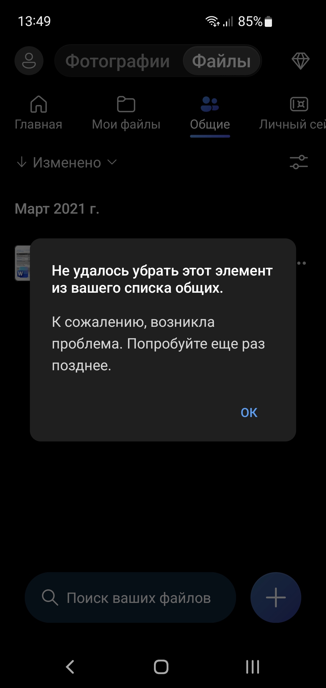 Конфликты синхронизации: если OneDrive все еще пытается синхронизировать этот общий файл, он может предотвратить удаление.