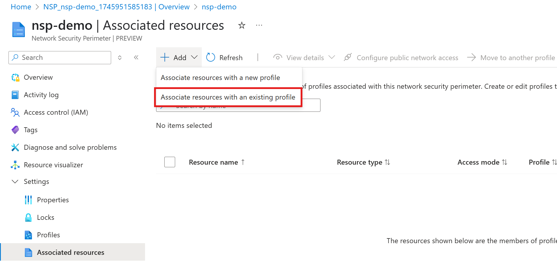 3. Выберите "Добавить>связанные ресурсы" с существующим профилем.