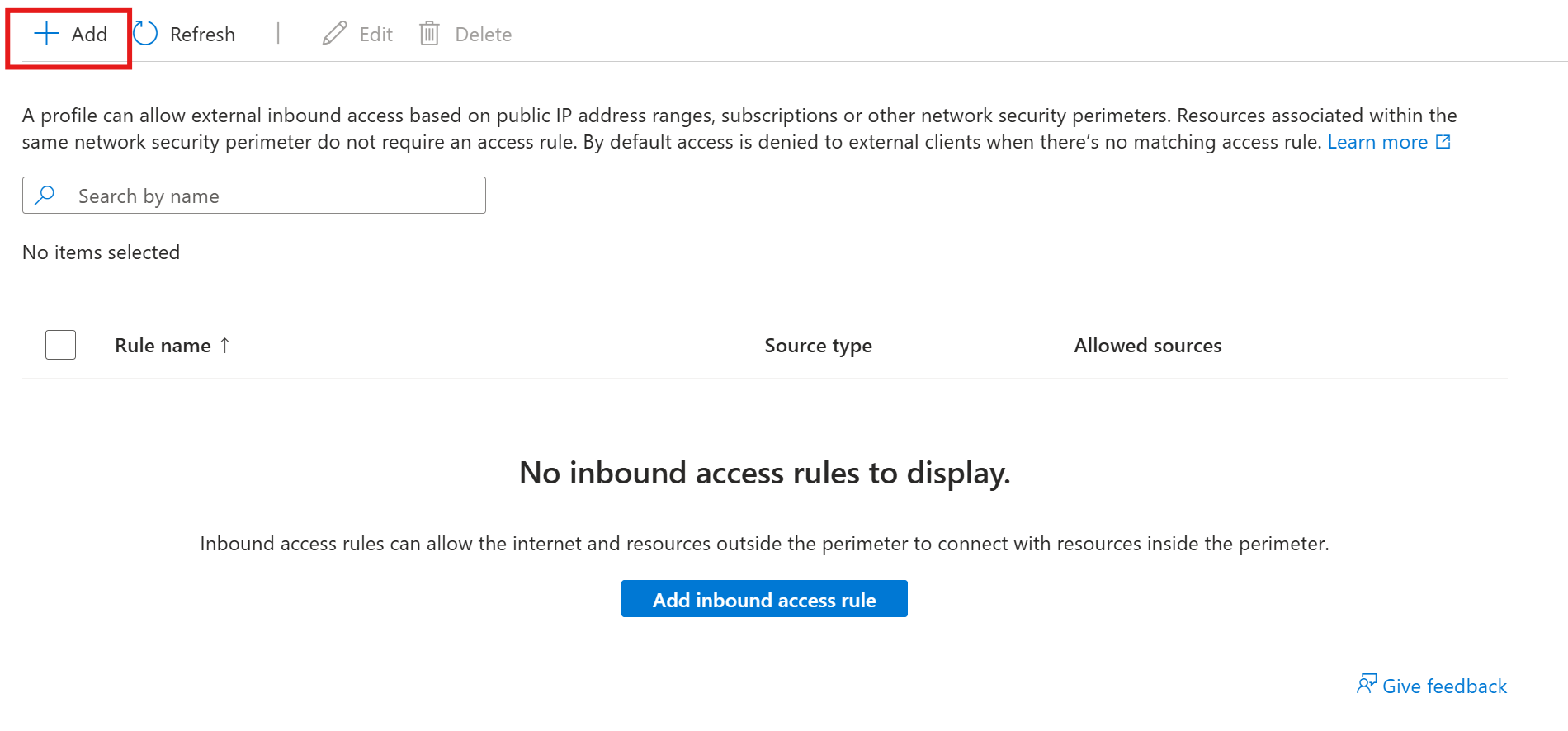 7. Нажмите кнопку "Добавить ", чтобы создать правило входящего доступа.